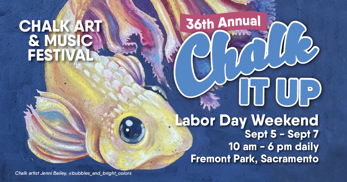 - The Chalk It Up! The Chalk Art & Music Festival is a three-day celebration of local artists and the arts community — one of the last free, family-friendly festivals in Midtown Sacramento. The Chalk It Up Festival is a Sacramento tradition, a gift to the community. With the help and partnership of our generous sponsors and donors, we’ve kept it 100 percent free to the public since 1991, over 3 decades!